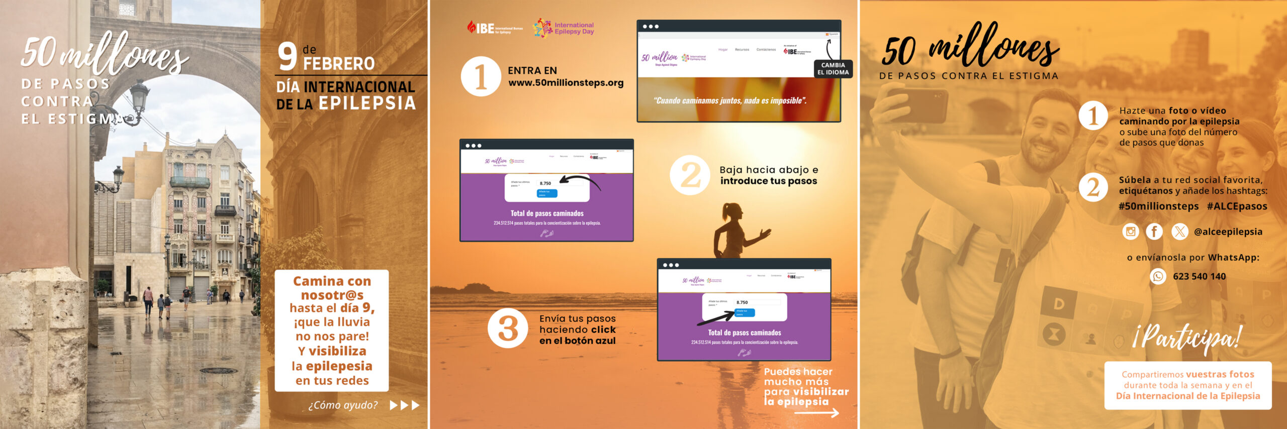 Además, como cada año, nos unimos también a la iniciativa internacional 50 Million Steps, impulsada por el International Bureau for Epilepsy, animando a la ciudadanía a salir a caminar y donar sus pasos para visibilizar la epilepsia y combatir el estigma que aún la rodea.